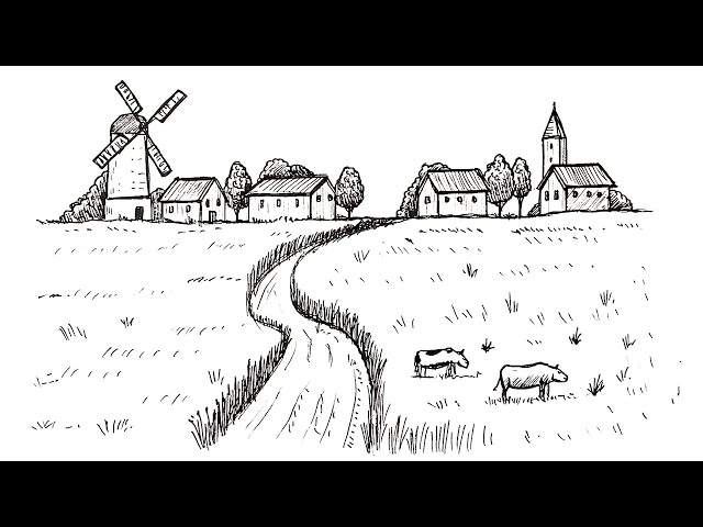 How To Draw A Farm How To Draw A Village Youtube